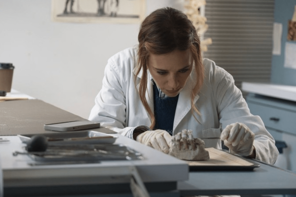 “In the Blink of an Eye”, “W mgnieniu oka” to jest baśń. I trochę żałuję, że nie obejrzałam jej razem z moimi nastolatkami – one zawsze mają ciekawsze ode mnie spostrzeżenia, gdy rozmowa schodzi na relacje, emocje i sens życia. Baśń w niestandardowym znaczeniu, rozpostarta na przestrzeni ponad 45 000 lat. Film splata trzy momenty z historii ludzkości – prehistoryczną rodzinę neandertalczyków, panią naukowiec badającą szczątki człowieka z tych odległych czasów oraz nieśmiertelną istotę transportującą nowe pokolenia do systemu Keplera (nie znalazłam informacji, by taki system istniał dziś, ale ogranicza nas tylko wyobraźnia – i ewentualny brak wiary, że kiedyś może to być prawda). Te trzy historie, jedna w kulturze prymitywnej, druga dziejąca się w cywilizacji, jaką znamy dziś i trzecia odległa nam technologicznie, mają to samo przesłanie.